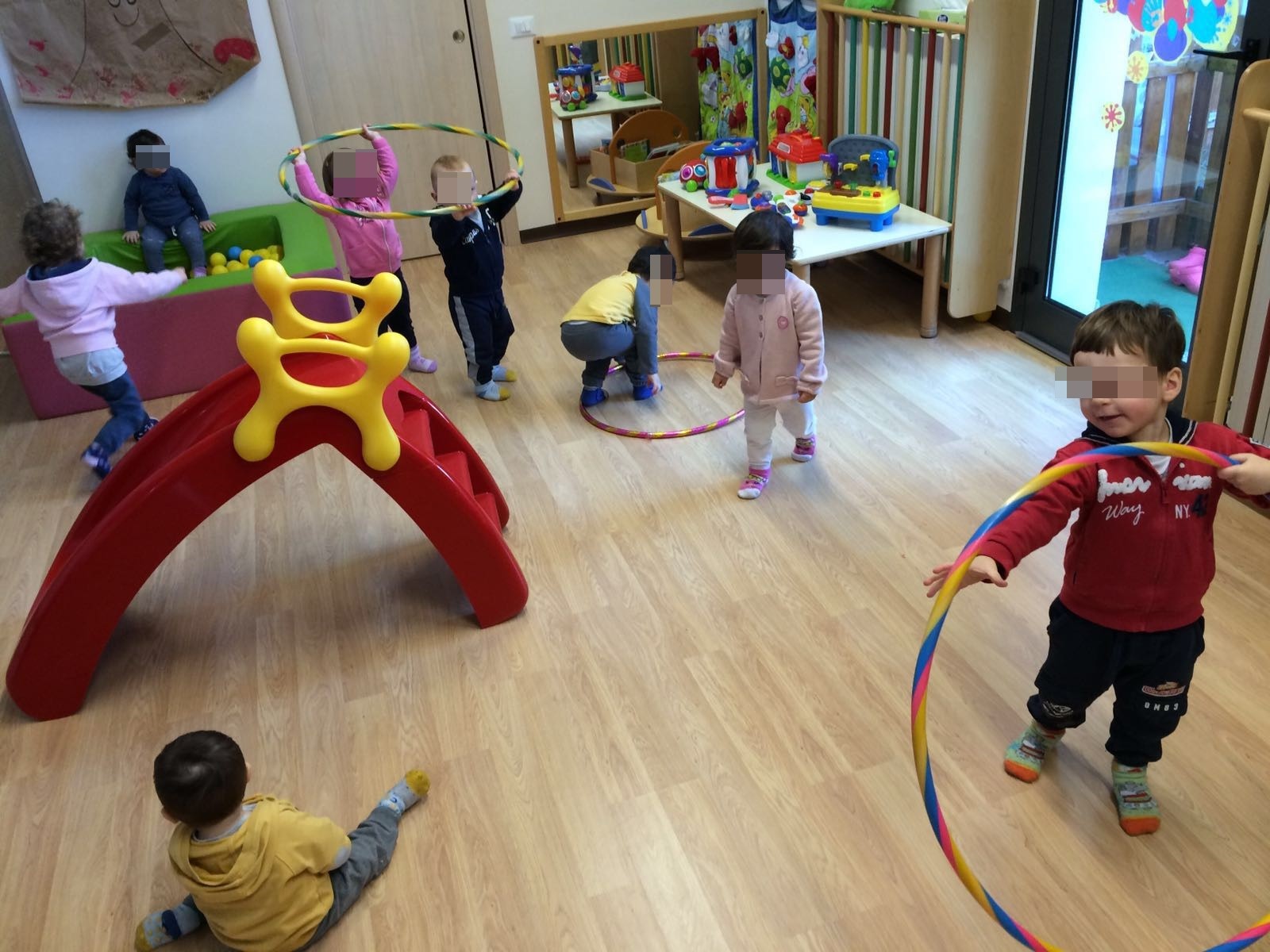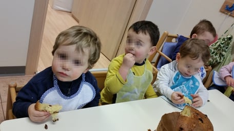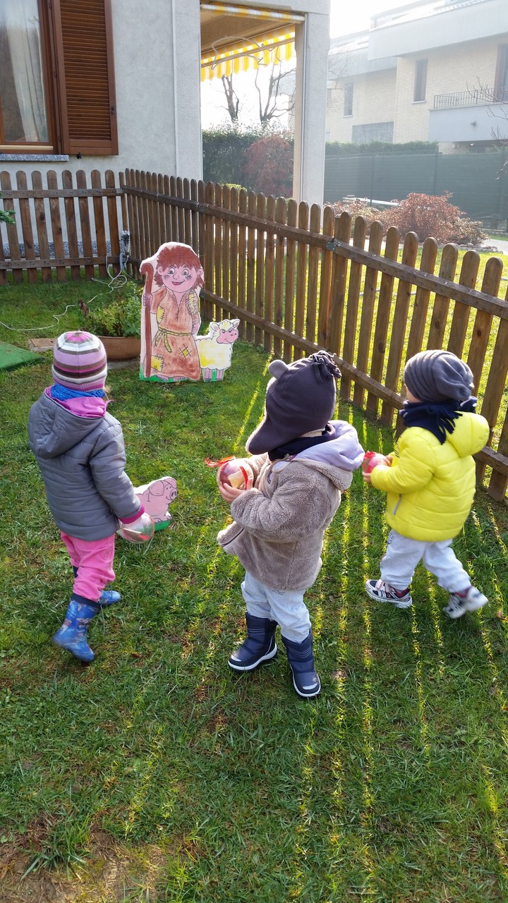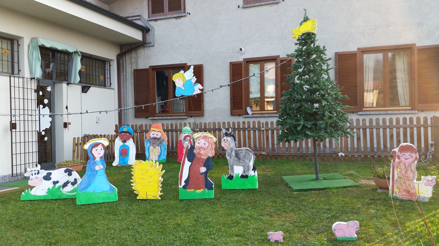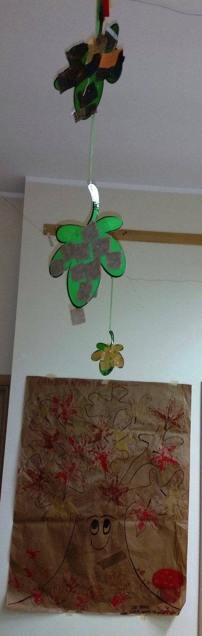 L'ALBERO DI NATALE ADDOBBATO DAI BIMBI  E IL PRESEPE NELL'AREA VERDE DEL NIDO